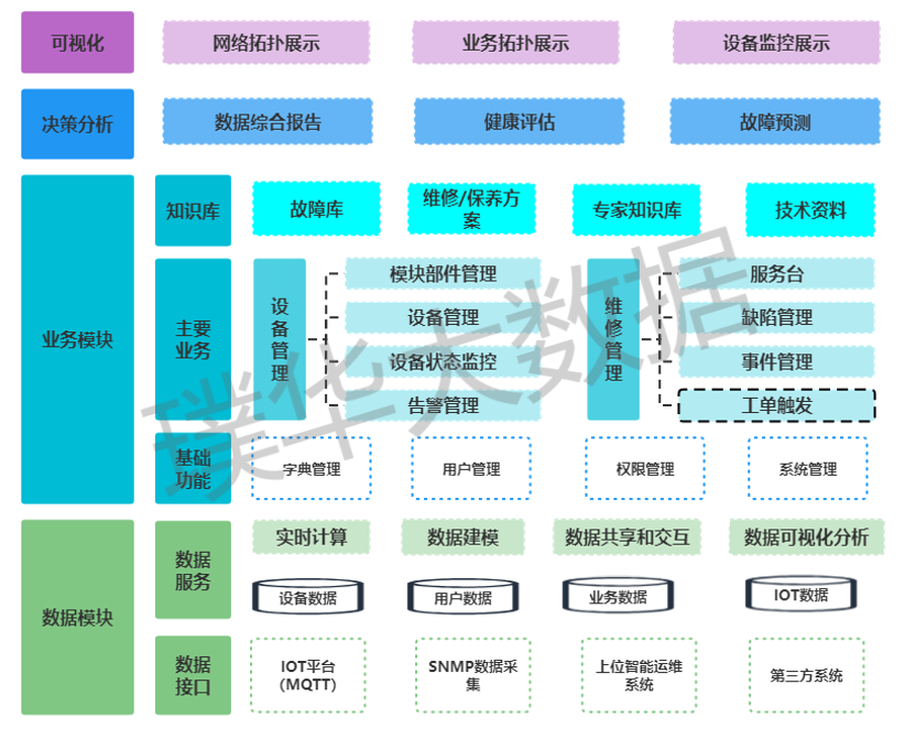 运维数据分析是一个作用于将整个运维监控数据、业务数据、运维协同等串联起来,并能全局呈现态势的产品。它通过对运行监控、资源状况、运维协同的多维度数据汇总展现。形成定期性汇报,让运维管理者实时了解运维态势,更好的做运维决策;让运维服务人员实时跟踪业务运行状况,更快的做业务响应;让运维技术人员全面了解故障,更准确的做故障定位与处理。
