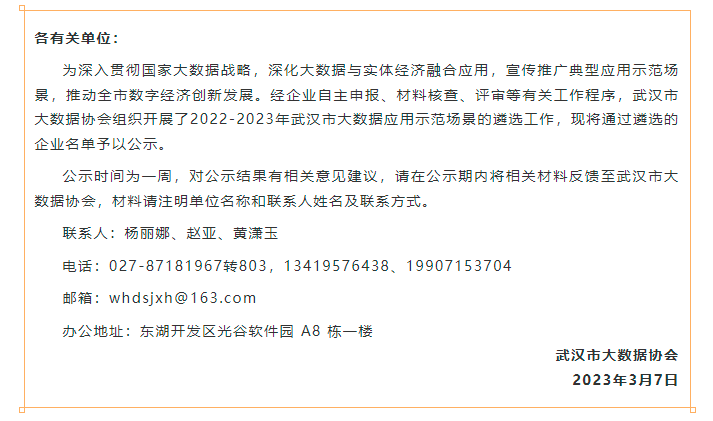 大会发布了“2022-2023年武汉市大数据应用示范场景”,鼓励全市优秀大数据企业充分发挥标杆引领作用,推动全市数字经济创新发展。